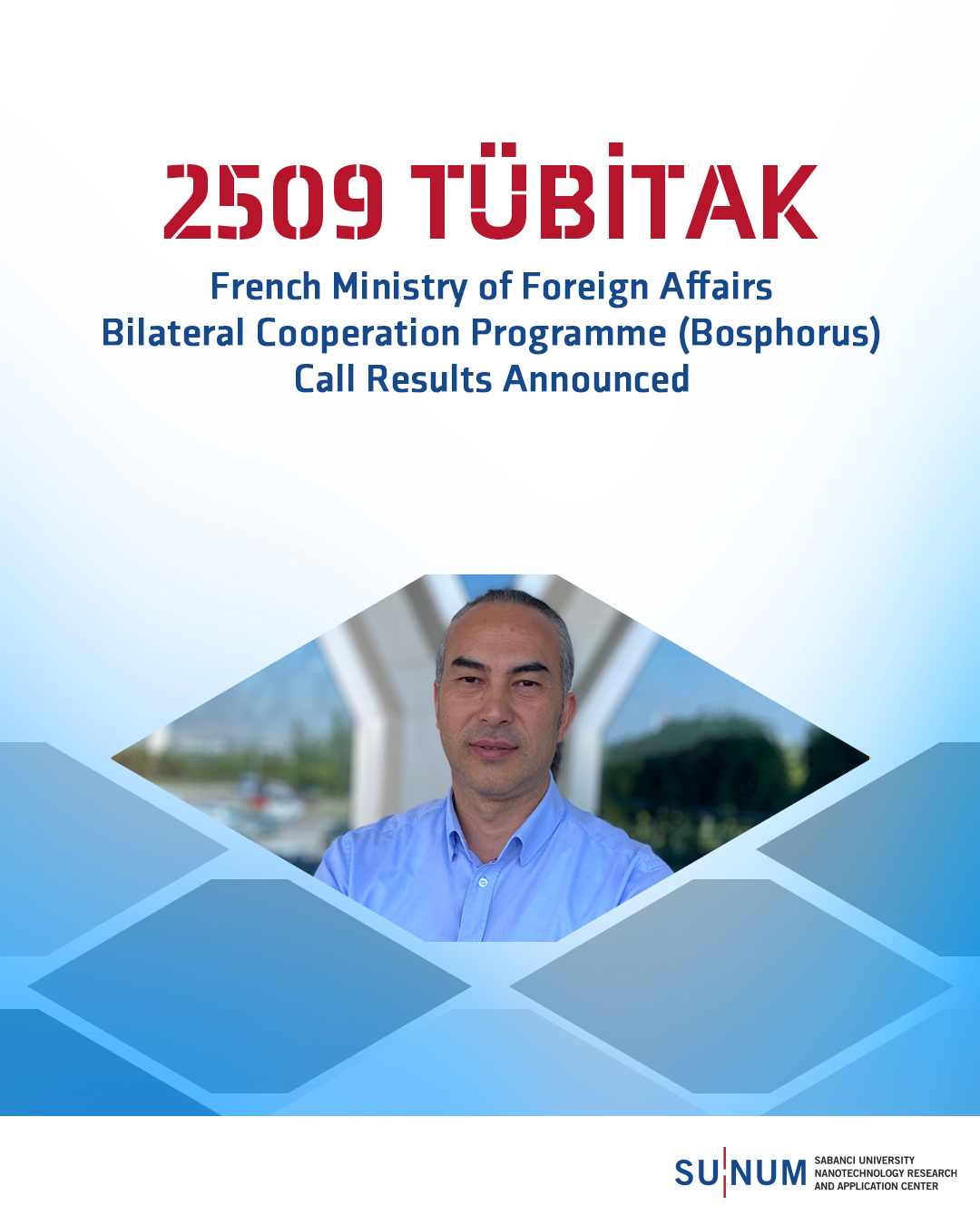 Sabancı University Nanotechnology Research and Application Center’s Full-Time Researcher, Dr. İsmail Fidan, has been awarded support under the 2509 TÜBİTAK–French Ministry of Foreign Affairs Bilateral Cooperation Programme – Bosphorus 2025 Call, in collaboration with Prof. Dr. Dominique Luneau from the Laboratoire des Multimateriaux et Interfaces (LMI) at Université Claude Bernard Lyon 1, France.