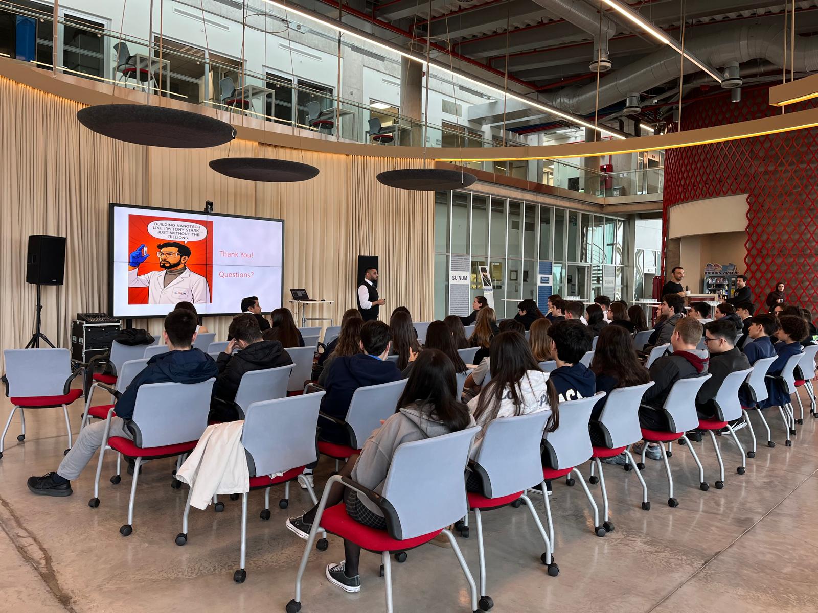 On November 18, 2025, we hosted students from Eyüboğlu Education Institutions at SUNUM. We provided students and teachers with information about our competencies, research areas, and laboratories. As part of our efforts to raise awareness about the social impact of nanotechnology, we brought together NanoBio4Can MSCA Cofund fellows Dr. Kashif Maroof and Dr. Shoeb Anwar Ansari with the students. The researchers gave presentations about their work and answered questions from the students.