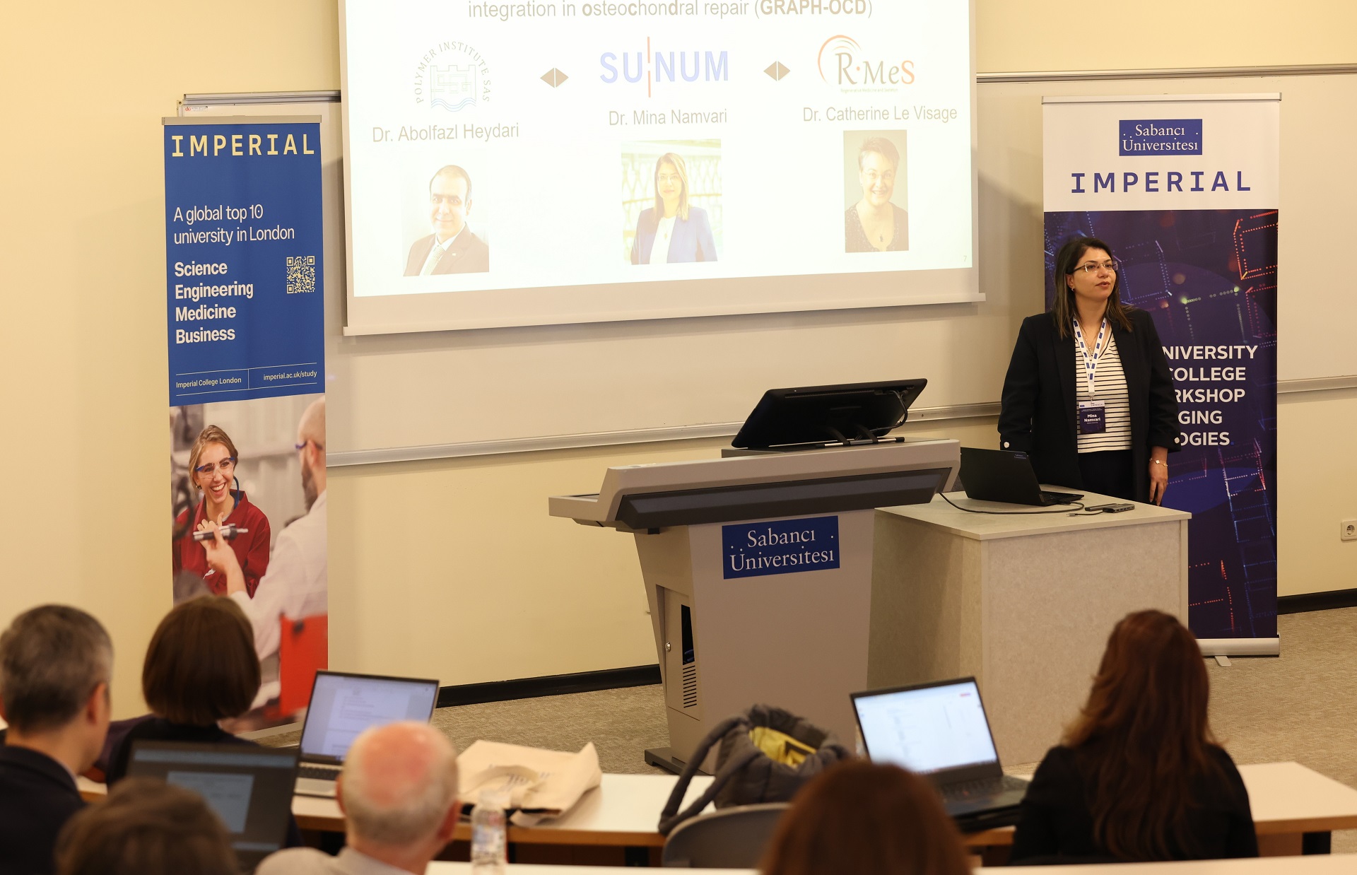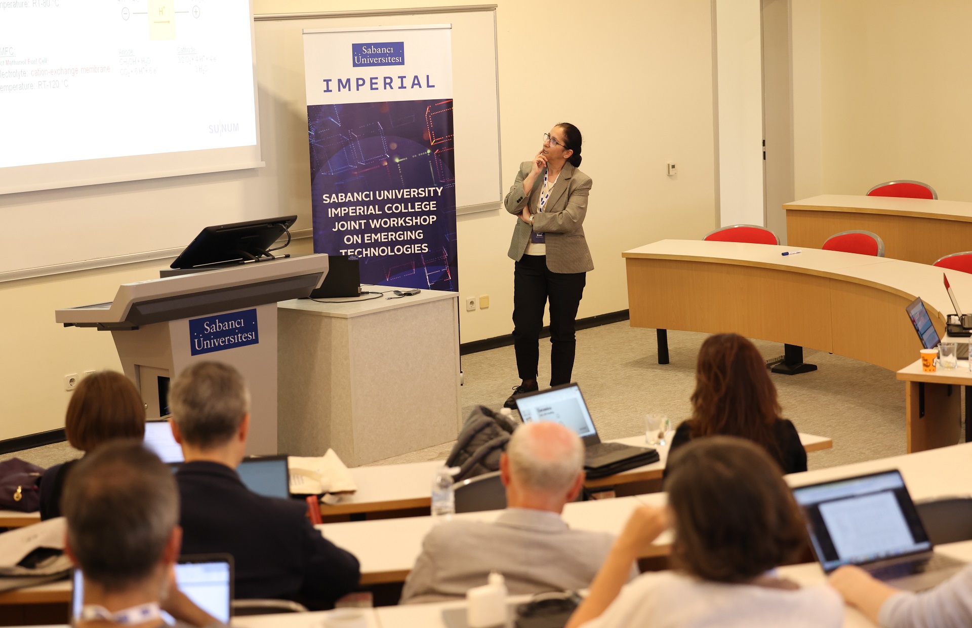 Sabancı University organized a workshop to discuss new collaboration opportunities with Imperial College London as part of its internationalization strategy. In addition to faculty members from Sabancı University and Imperial College, SUNUM researchers also gave presentations at the workshop. During the two-day event, the Imperial College London delegation visited the Sabancı University Nanotechnology Research and Application Center (SUNUM). During the visit, we provided information about SUNUM's research infrastructure, ongoing projects, and interdisciplinary areas of work, while also evaluating potential collaboration opportunities with Imperial College London.