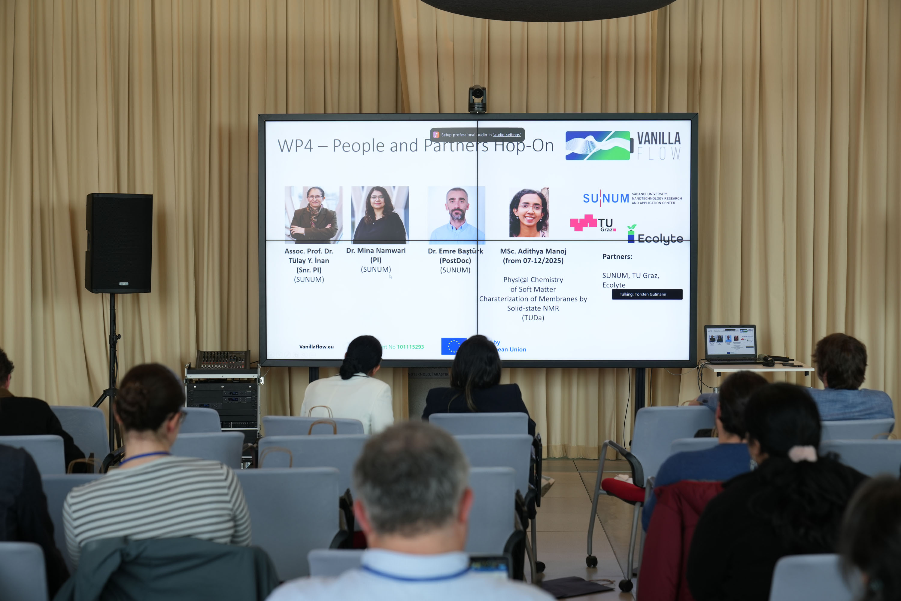 The project titled “Hopping on Artificial Intelligence Guided Development of Vanillin-based Flow Batteries – HOP-ON VanillaFlow” is led by SUNUM researcher Barun Kumar Chakrabarti and coordinated by Graz University of Technology by Stefan Spirk. It is funded under the Horizon Europe call HORIZON-WIDERA-2023-ACCESS-06-01 (Hop-On Facility). The SUNUM research team includes Tülay İnan, Mina Namvari, Serap Hayat Soytaş, Mustafa Kemal Bayazıt, Züleyha Kudaş, Reza Afshar Ghotli, Zehra Çobandede, and Baidaa Shorbani.