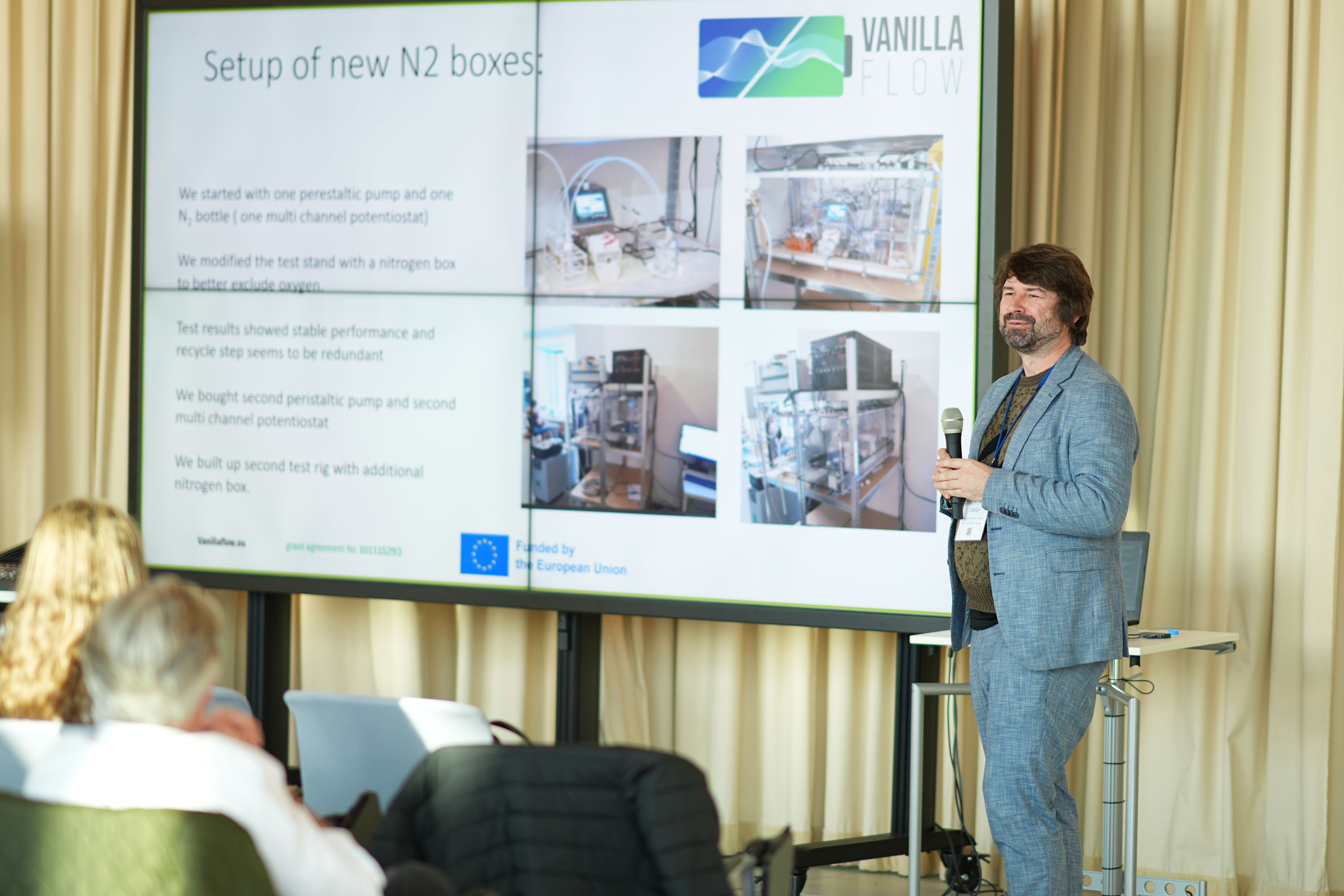 Over the course of the two-day meeting, participants delivered technical presentations covering a broad spectrum of topics, including yeast design, advanced membrane technologies, AI-supported electrochemistry, carbon felt engineering, and detailed assessments of individual work packages.