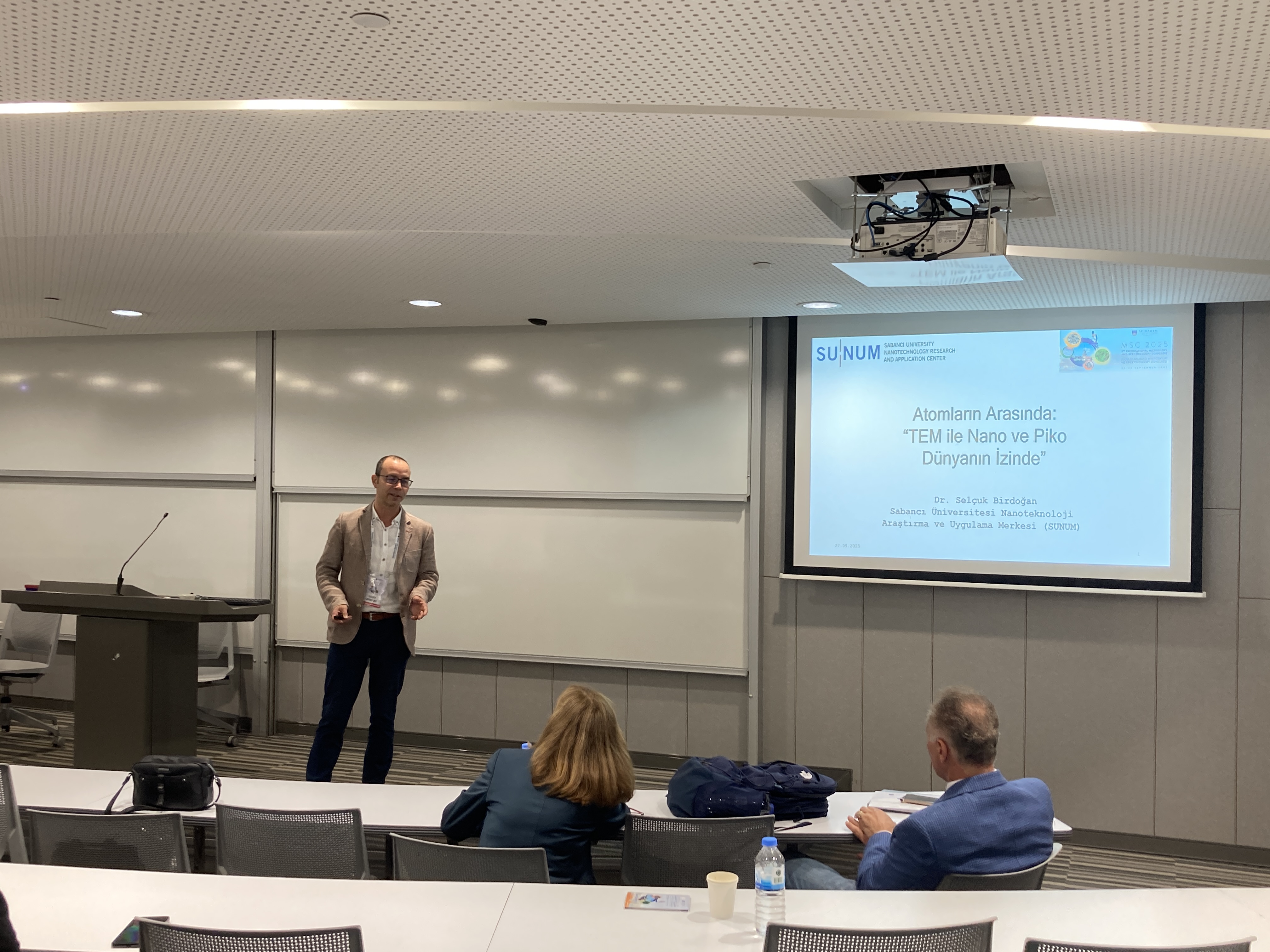 SUNUM olarak 25-27 Eylül 2025 tarihleri arasında gerçekleşen 27. Ulusal Elektron Mikroskopi Kongresi'ne (EMK 2025) hem standımızla yerimizi aldık hem de bilimsel toplantılara katkıda bulunduk. Araştırmacılarımızdan Doç. Dr. Feray Bakan Mısırlıoğlu, teknik uzmanlarımızdan Dr. Büşra Tuğba Çamiç ve Dr. Selçuk Birdoğan EMK 2025'e davetli konuşmacı olarak katıldılar.