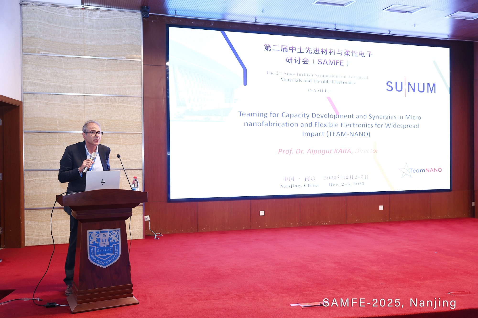 SUNUM 2 –5 Aralık 2025 tarihlerinde Çin’in Nanjing kentinde, Nanjing Tech Üniversitesi (NJTech) ev sahipliğinde düzenlenen İkili Çin-Türkiye İleri Malzemeler ve Esnek Elektronik Sempozyumu (SAMFE-2025) ve 6–8 Aralık 2025 tarihlerinde Nanjing University of Posts and Telecommunications (NJUPT) ev sahipliğinde gerçekleştirilen 8th International Symposium on Bio, Organic & Nano Electronics (ISBONE 2025) sempozyumlarında yerini aldı.